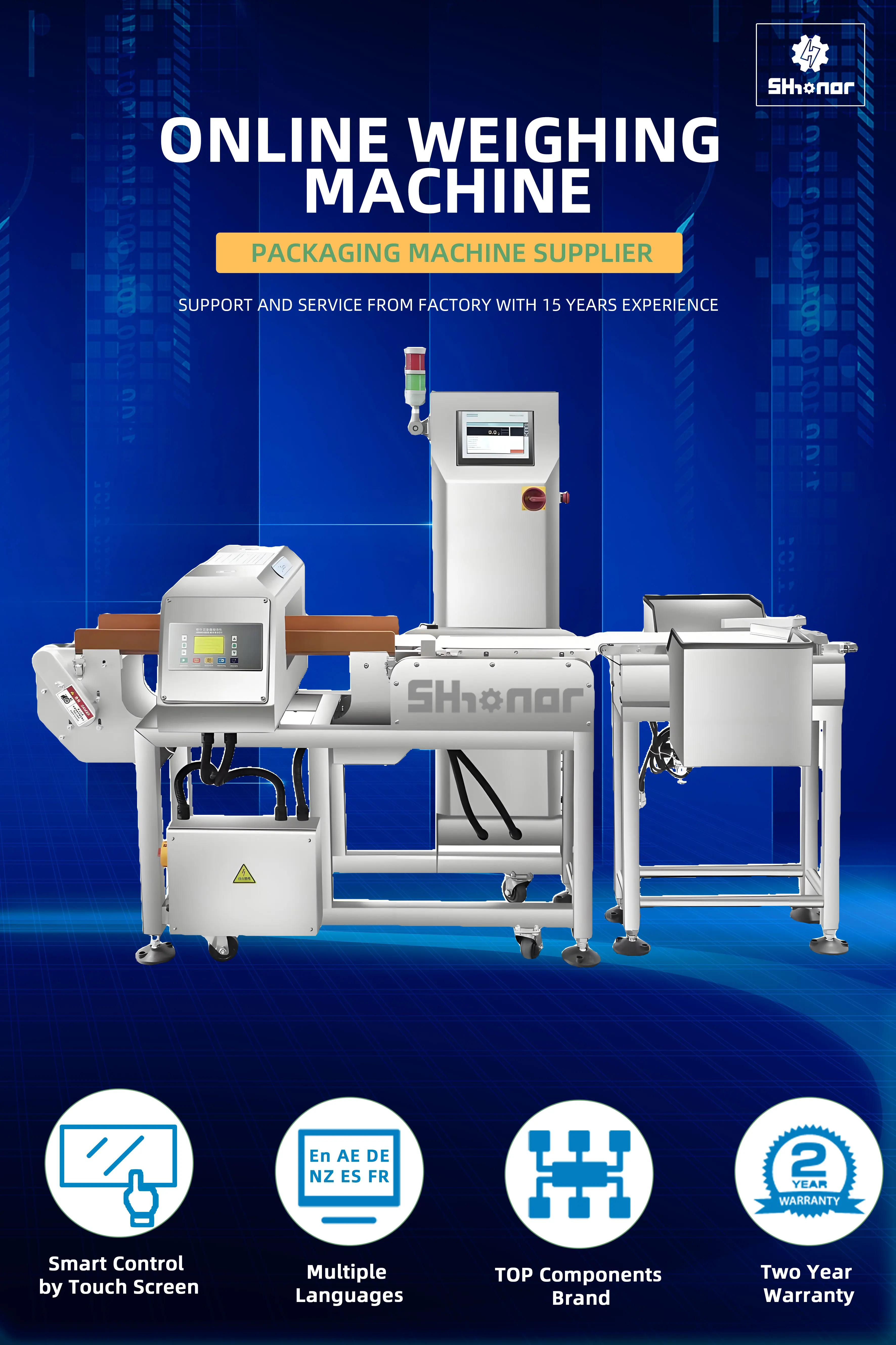 The Online Checkweigher adopting German HBM high-precision sensor,based on the most advanced high-speed digital signal processing technology, high-speed, stable detection. Dynamic weight automatic compensation technology; zero point automatic analysis and tracking technology.